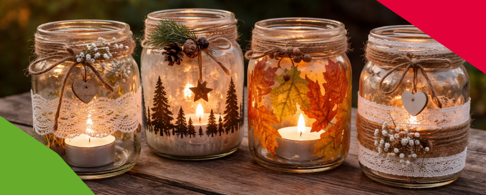In unserer Bastelanleitung zeigen wir dir vier Techniken, mit denen du ganz einfach stimmungsvolle DIY-Windlichter gestalten kannst.