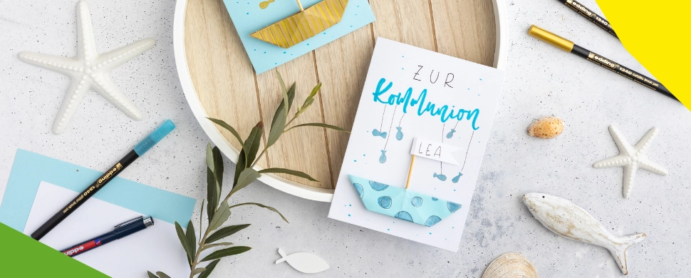 DIY Grußkarte zur Kommunion mit Papierschiffchen