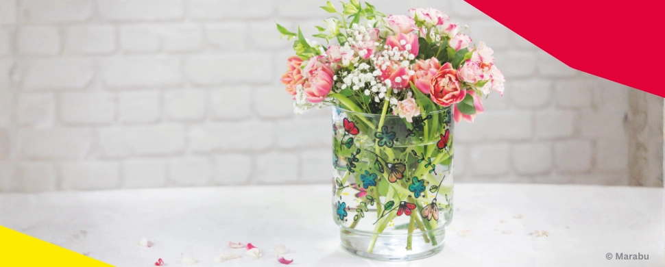 In dieser Schritt-für-Schritt Anleitung zeigen wir dir, wie du eine Blumenvase aus Glas selbst gestalten kannst.