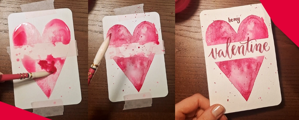 Einfache Valentinstagskarten mit Aquarellfarbe selber machen: Schritt-für-Schritt-Anleitung für ein Aquarell-Herz mit Tipps zu Material, Farben und Beschriftung.