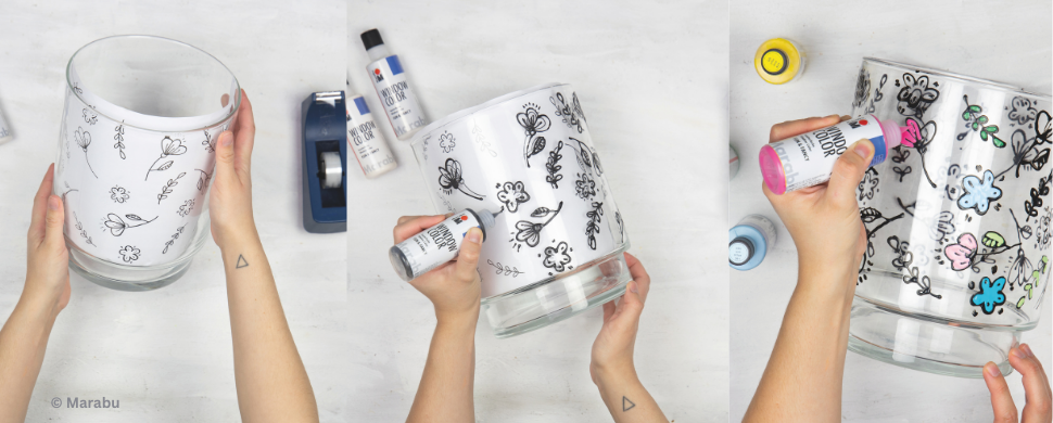 Mit den Window Color Farben von Marabu kannst du ganz einfach eine gläserne Vase selbst gestalten.
