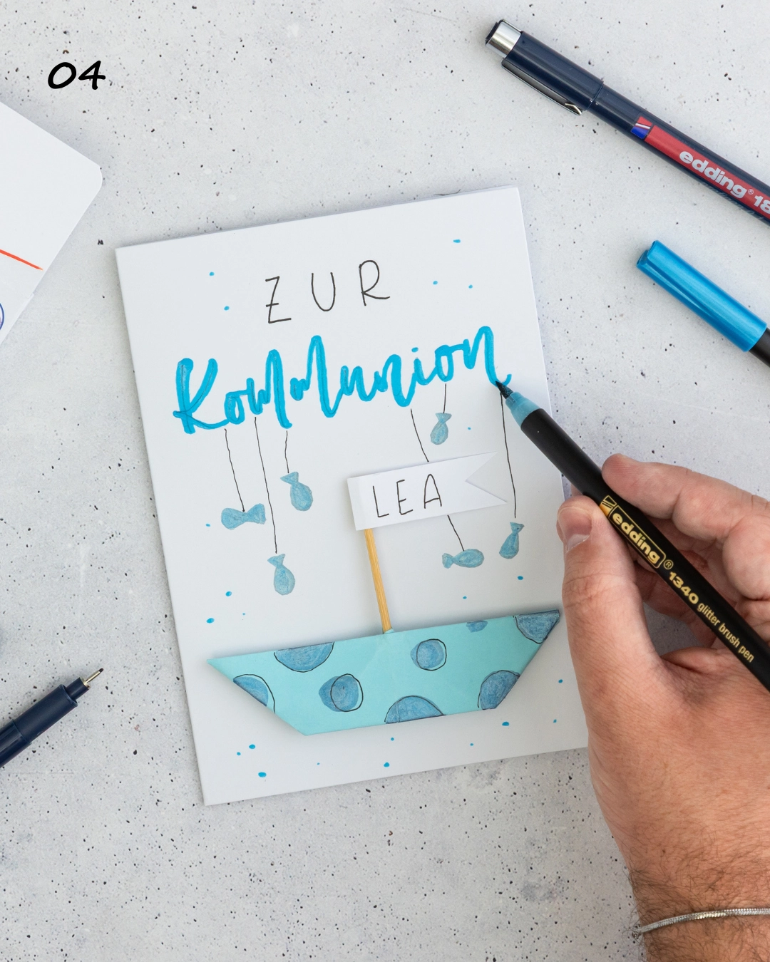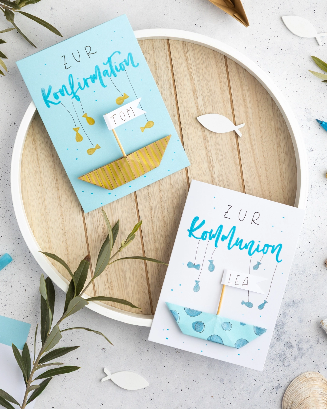 DIY Grußkarte zur Kommunion mit Papierschiffchen