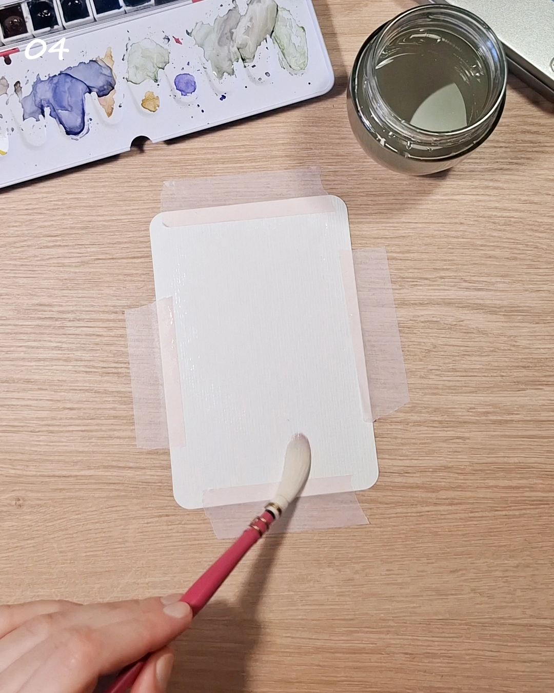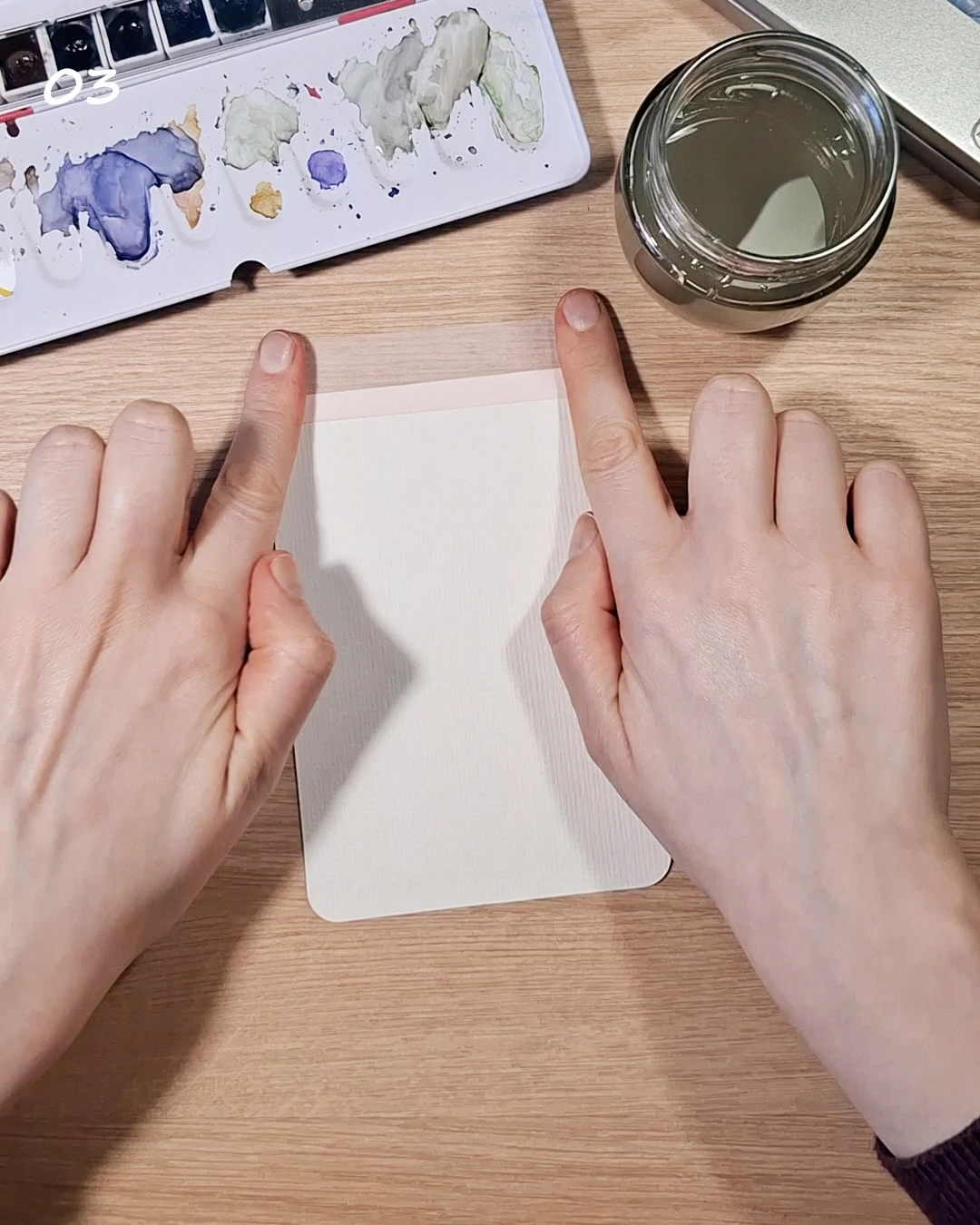 03) Befestige deine Postkarte mit etwas Tape an deiner Arbeitsfläche, damit sich das Papier nicht so sehr wellt.