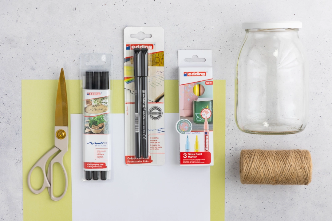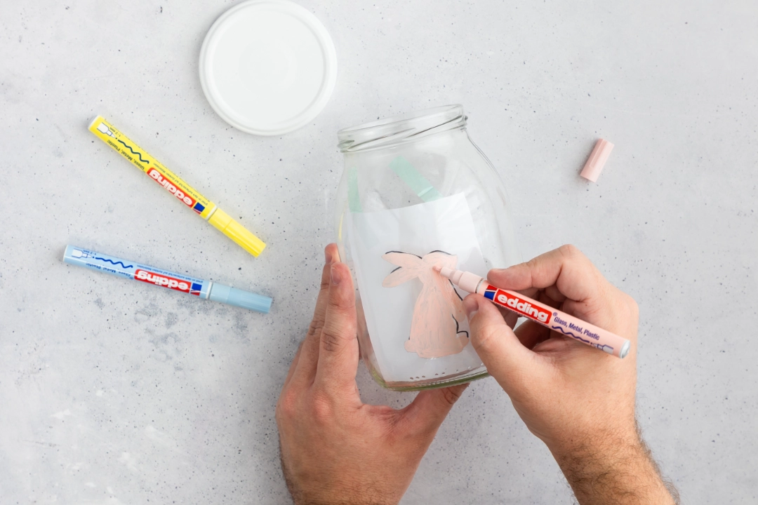 2. Vorlage in das Glas stecken und mit dem Edding Glanzlackmarker übertragen