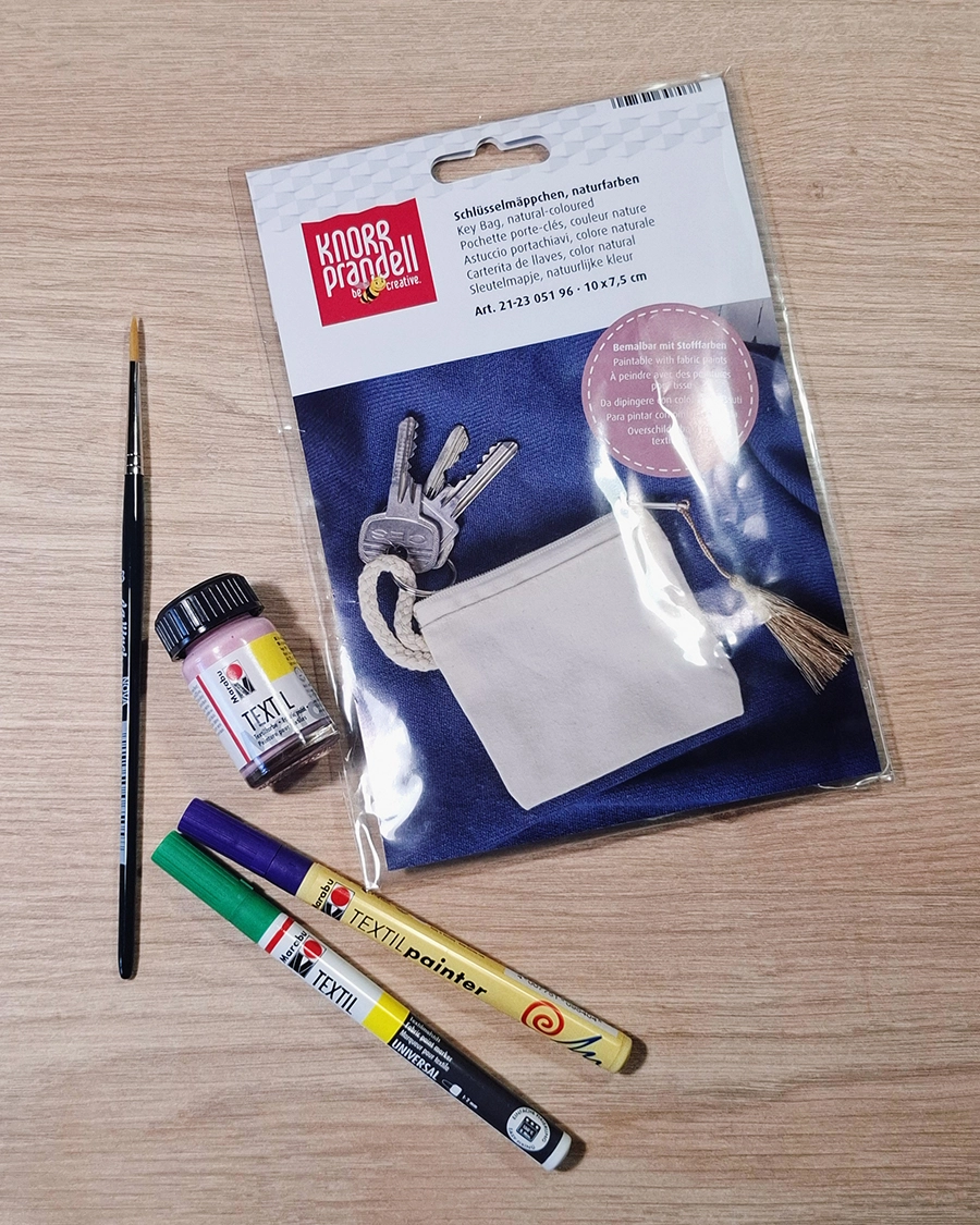 - Ein (naturfarbenes) Mäppchen (hier das Schlüsselmäppchen von Knorr Prandell)