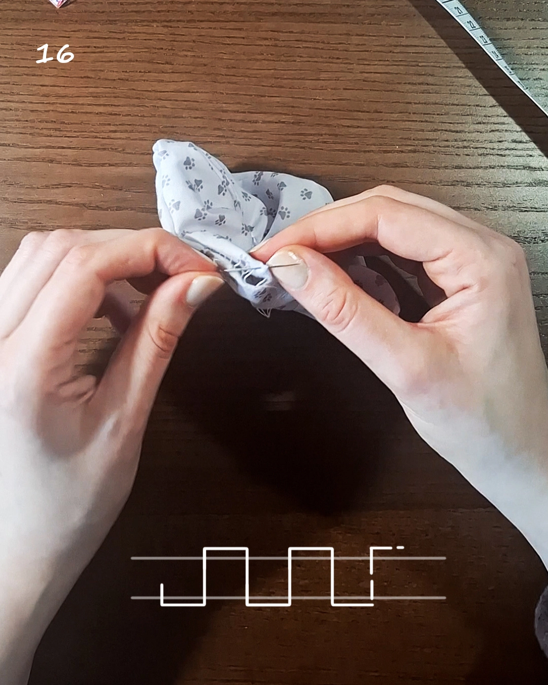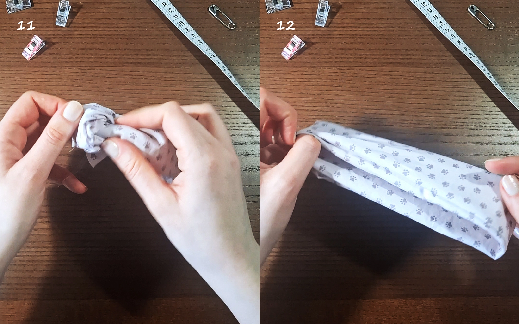 11-12) Wende das Scrunchie auf rechts.