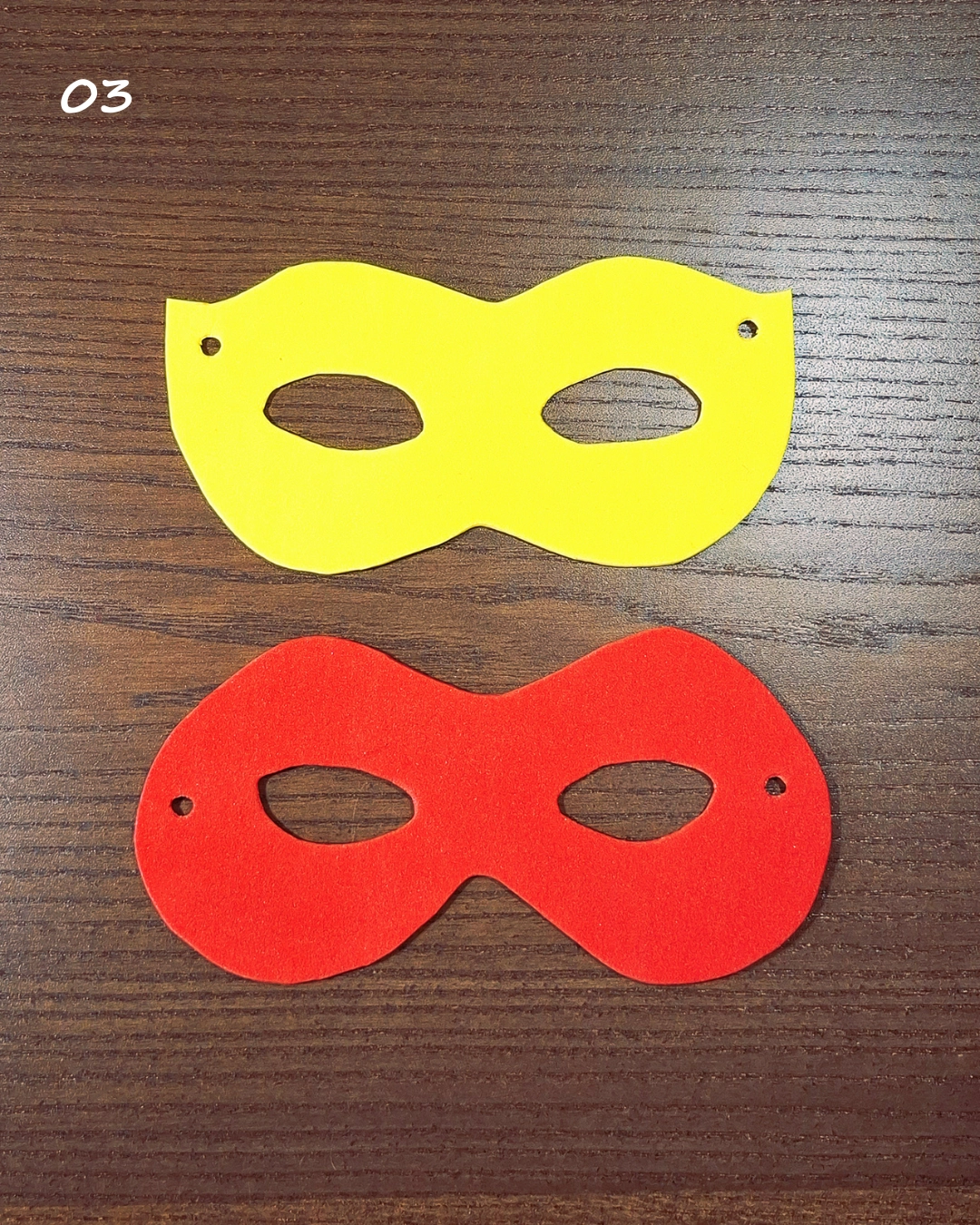 03) Schneide die Masken aus und stanze die Löcher mit einem Locher oder einer Lochzange hinein.